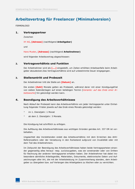 - Muster Arbeitsvertrag Freelancer
