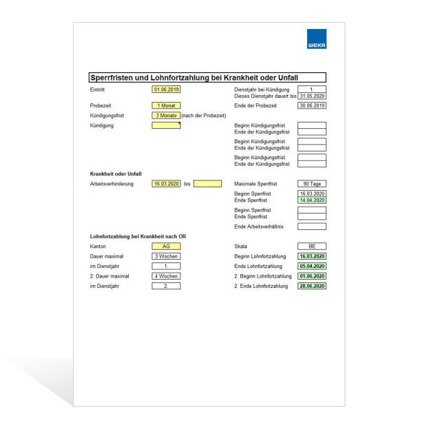 - Excel-Rechner zur Berechnung der Fristen wie Lohnfortzahlung, Kündigung oder Sperrfristen