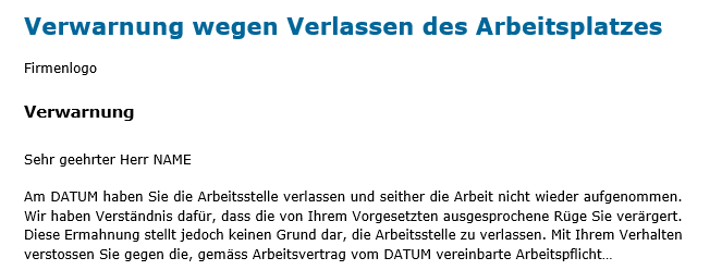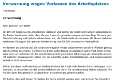 - Verwarnung wegen Verlassen des Arbeitsplatzes
