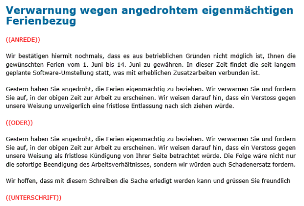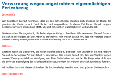 - Verwarnung wegen eigenmächtigem Ferienbezug