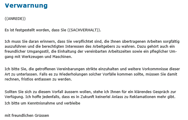 - Sie schreiben Ihre Verwarnungen inhaltlich unmissverständlich und klar.