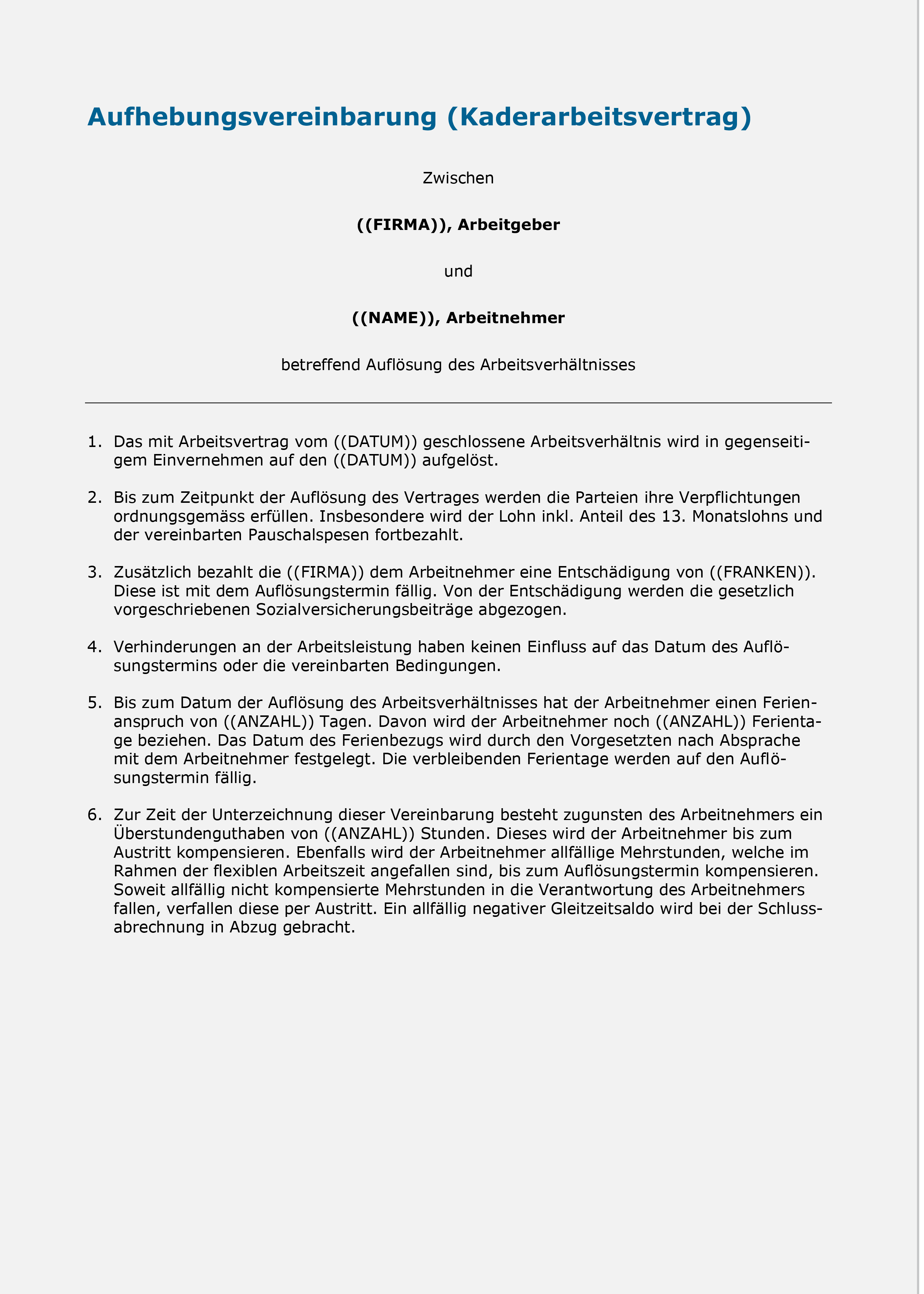 - Sie regeln typische Kaderaspekte wie Abfindung, Bonus, Rückgaben und Geheimhaltung professionell und nachvollziehbar.