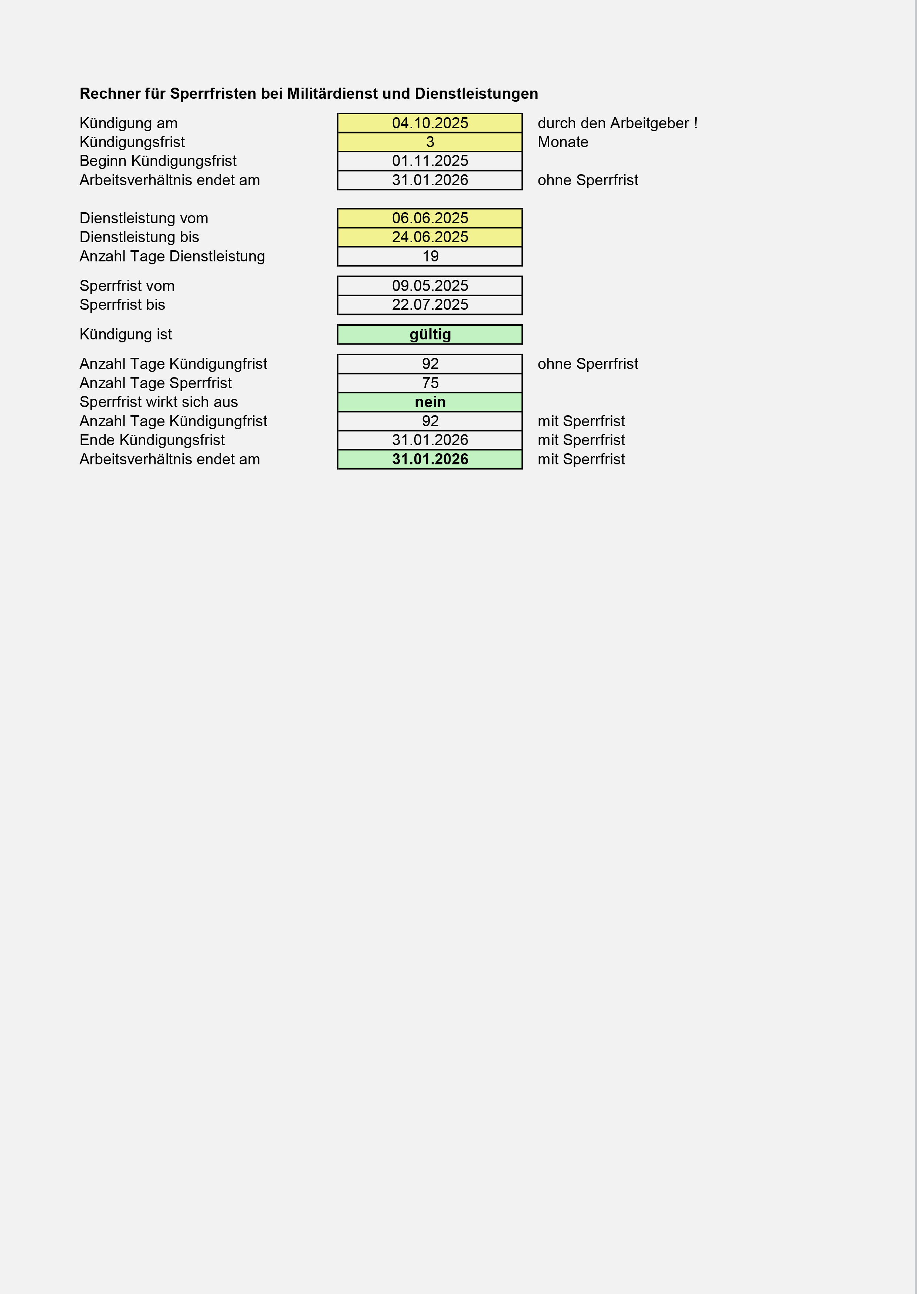 - Sie prüfen einfach, ob eine Kündigung während Militär-, Zivil- oder Schutzdienst zulässig ist.