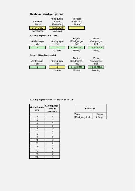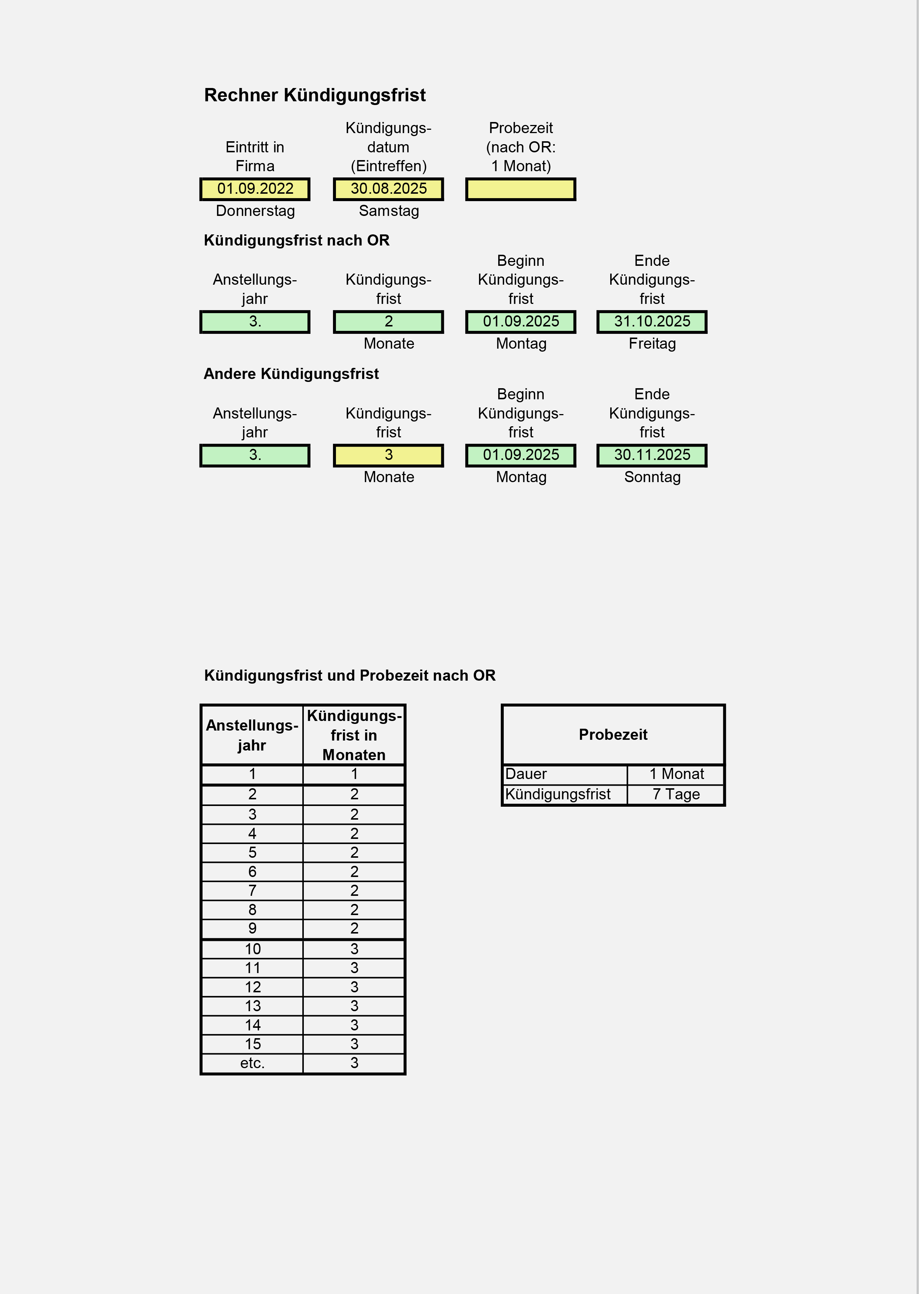 - Sie berechnen die Kündigungsfrist nach OR in wenigen Sekunden.