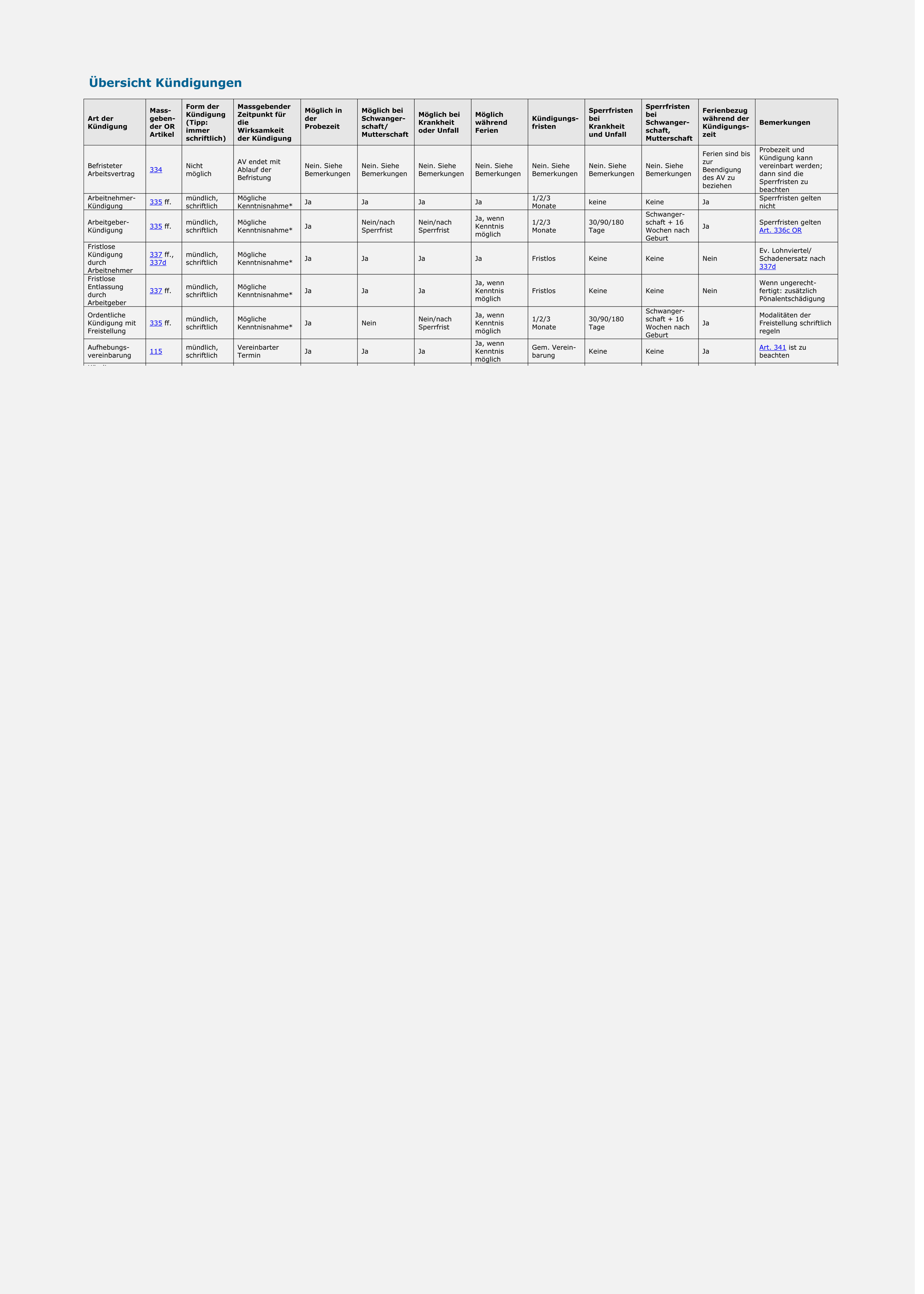 - Sie verfügen über eine übersichtliche Tabelle, um auf einen Blick die wichtigsten Kündigungsbestimmungen zu erfassen.