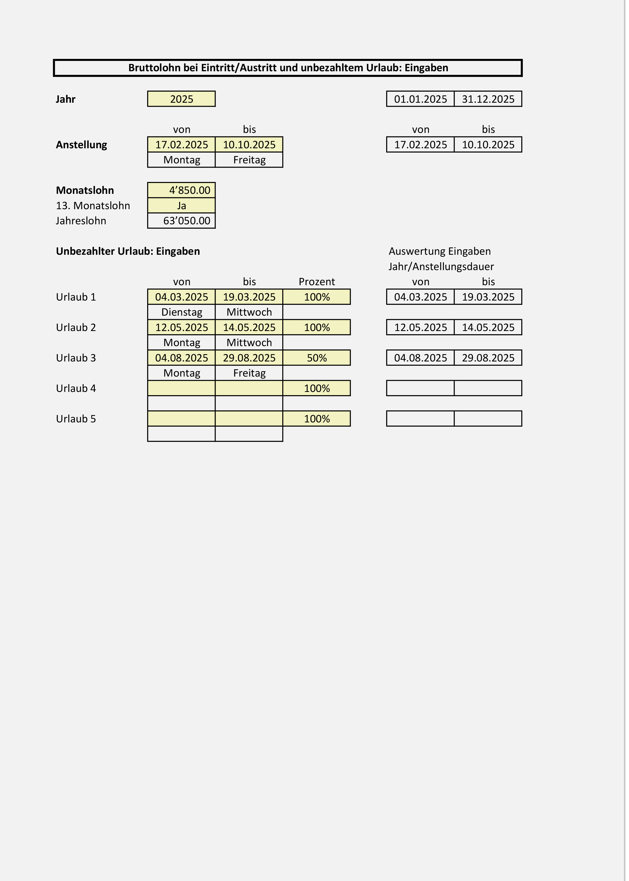 Bruttolohn bei Eintritt/Austritt und unbezahltem Urlaub korrekt berechnen