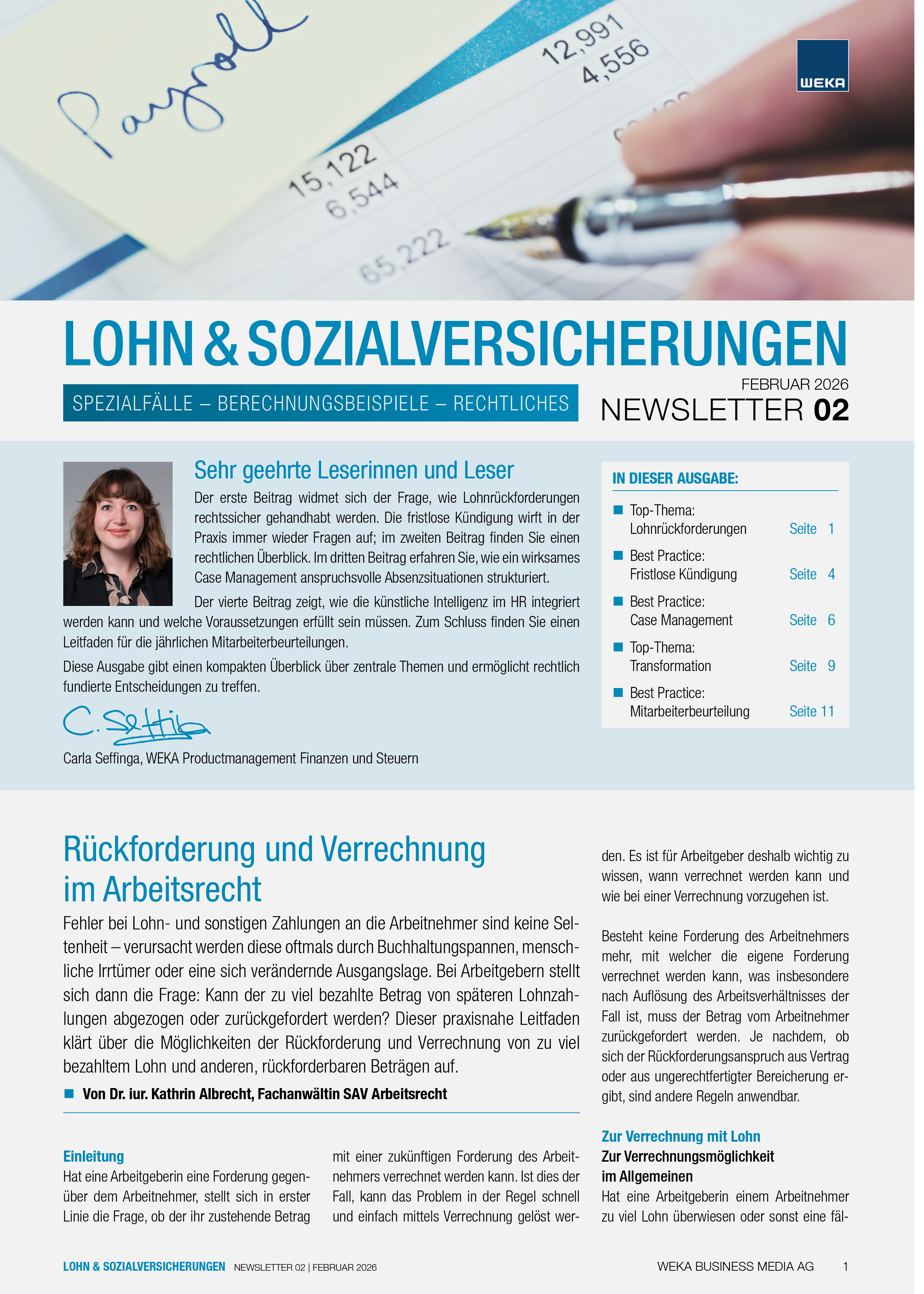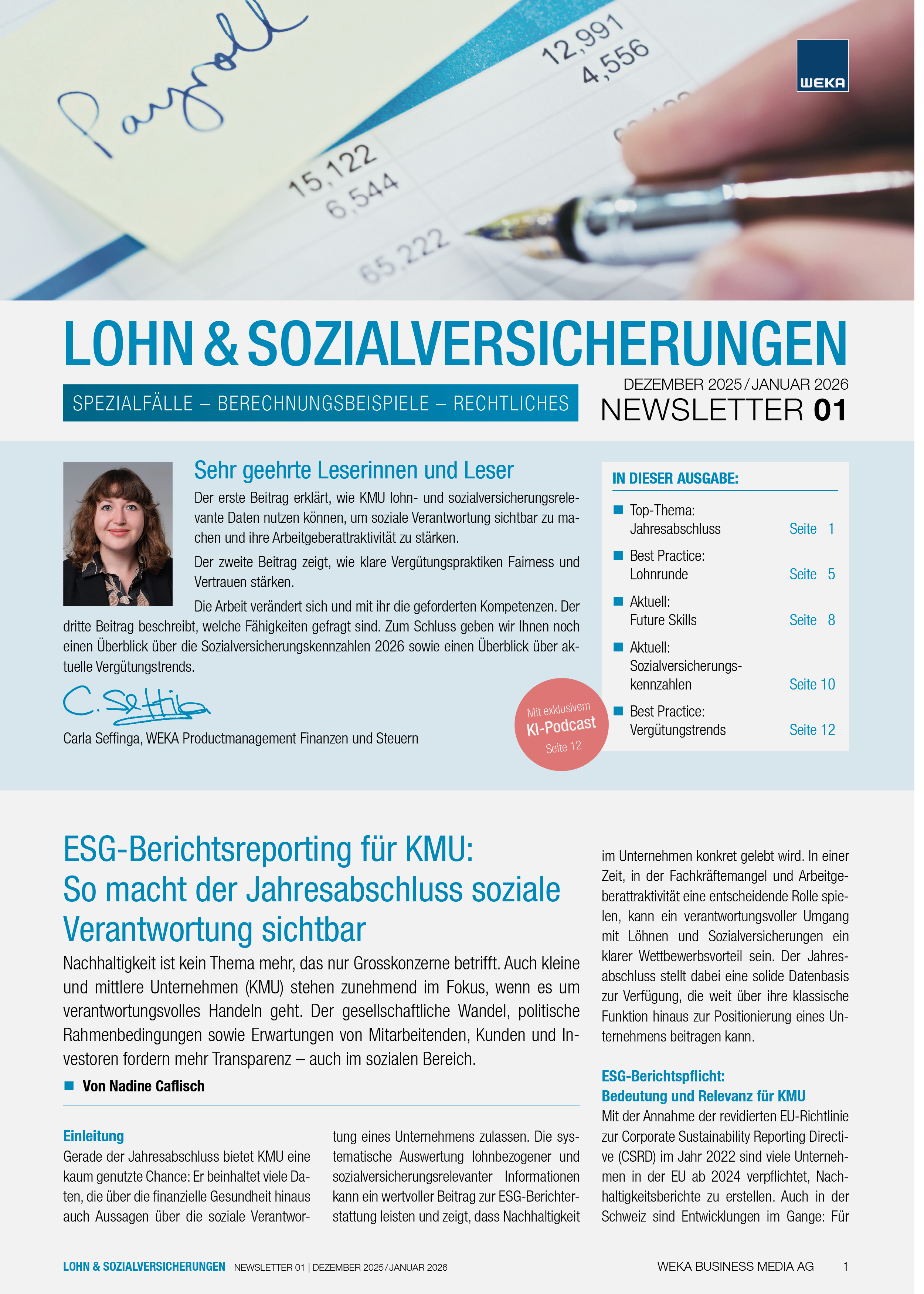 Mit dem Newsletter Lohn und Sozialversicherungen erhalten Sie 10 x jährlich kompakte Infos zu Fällen aus der Praxis sowie aktuellen Gerichtsentscheiden und deren Konsequenzen für den HR-Alltag. So bleiben Sie immer auf dem neusten Stand und profitieren von bestem Wissen, kompakt und zeitsparend aufbereitet.