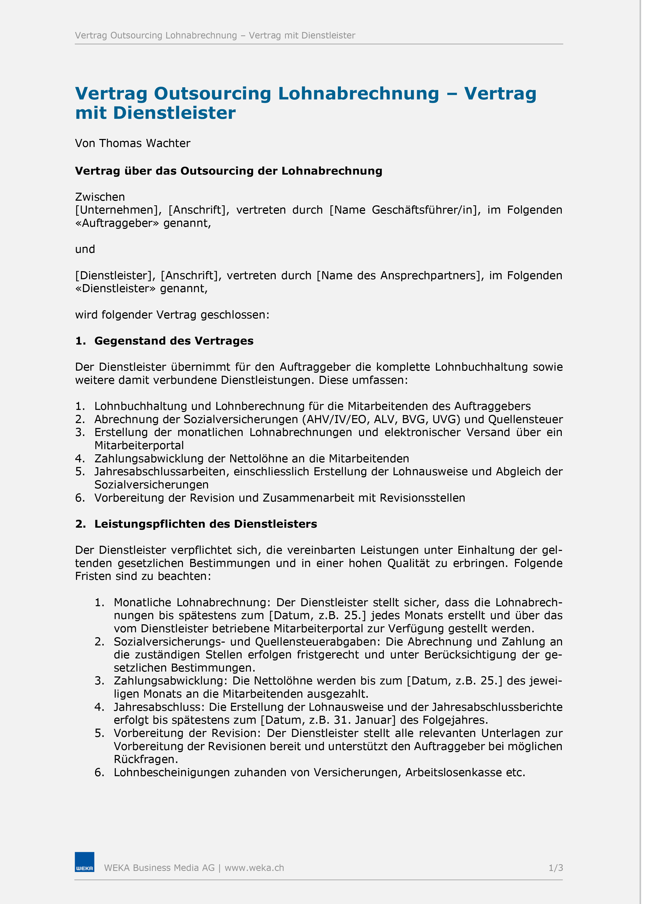 - Mustervertrag - Outsourcing Lohnabrechnung