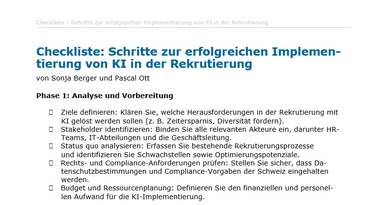 - Checkliste: Schritte zur erfolgreichen Implementierung von KI in der Rekrutierung