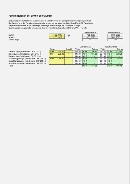 - Rechner Familienzulagen bei Eintritt oder Austritt