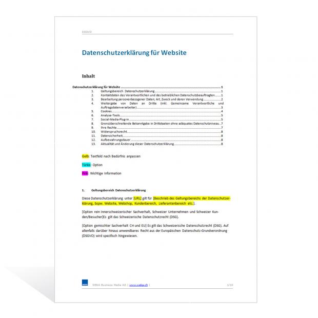 - Sie profitieren von einem Raster zur Datenschutzerklärung für Websites, den Sie auf Ihr Unternehmen zuschneiden können.