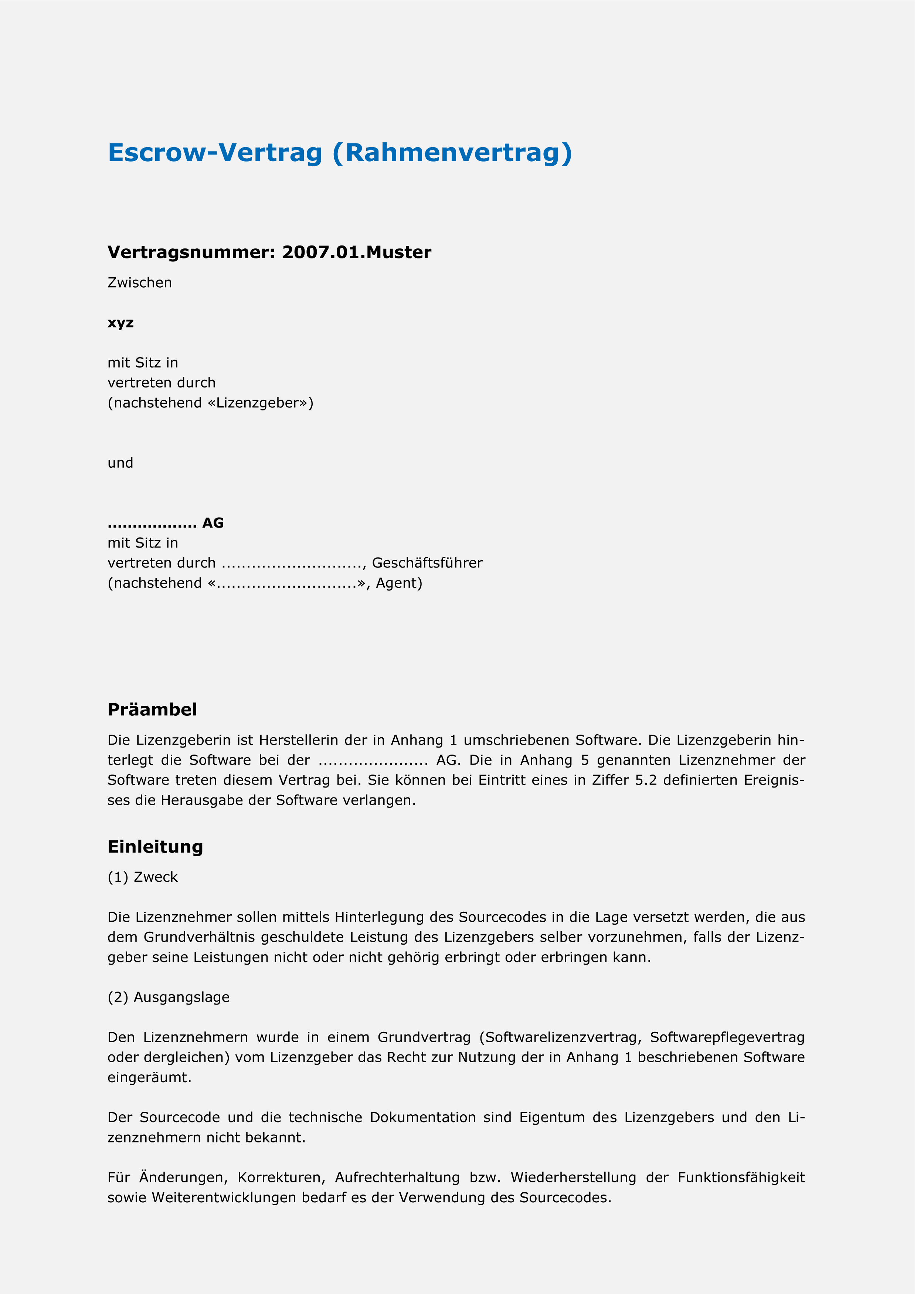 - Muster Escrow-Vertrag