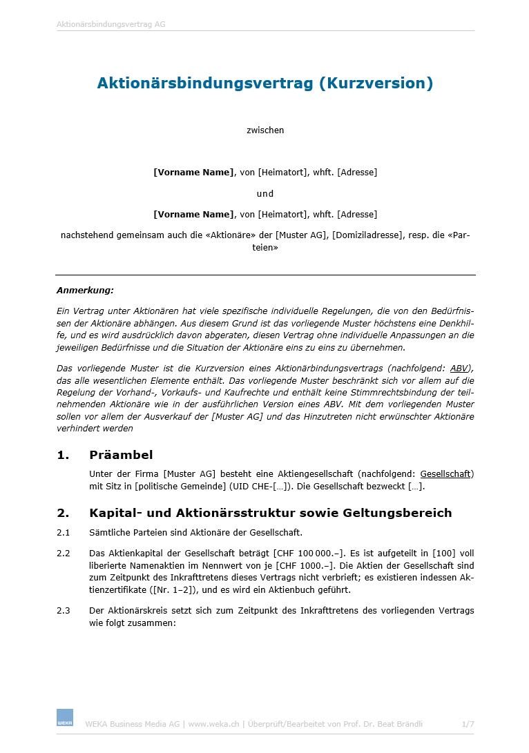 - Aktionärbindungsvertrag (kurze und ausführliche Version)