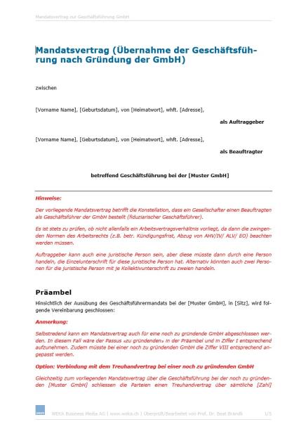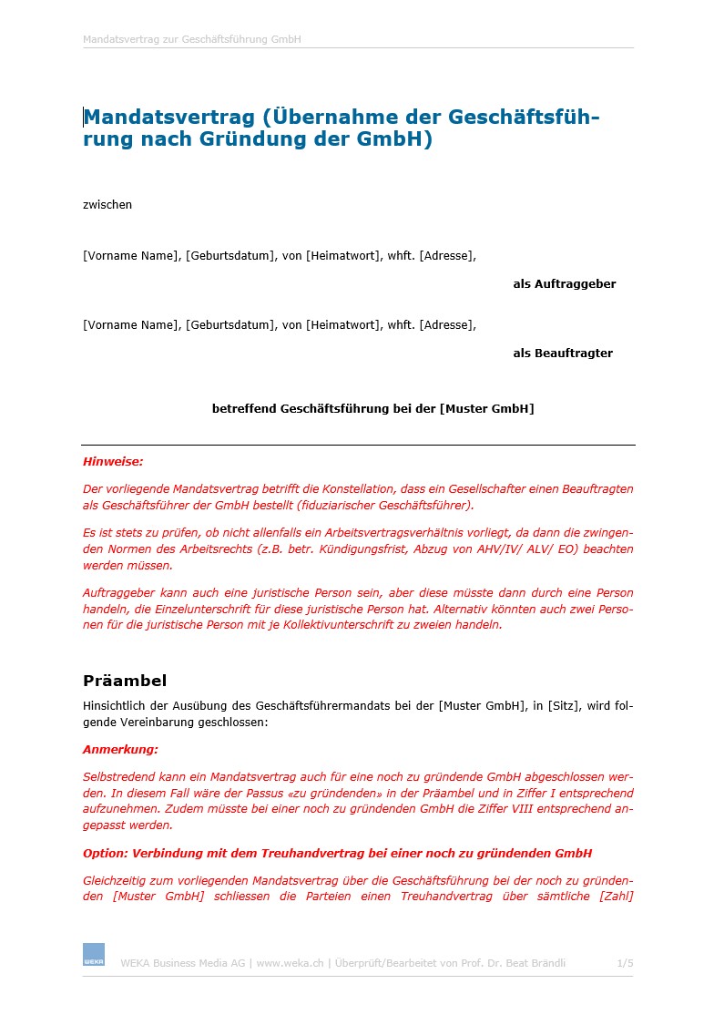 - Sie optimieren die Geschäftsführung, mit Mandatsverträgen und klaren Regelungen für Geschäftsführer und Revisionsstellen.