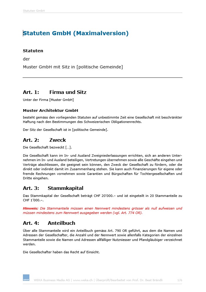 Dieses umfassende Download-Paket enthält alle wichtigen Mustervorlagen für die Gründung, Führung und Auflösung einer Gesellschaft mit beschränkter Haftung (GmbH) in der Schweiz. Sämtliche Dokumente wurden sorgfältig erstellt, sind rechtssicher und sofort in der Praxis einsetzbar.