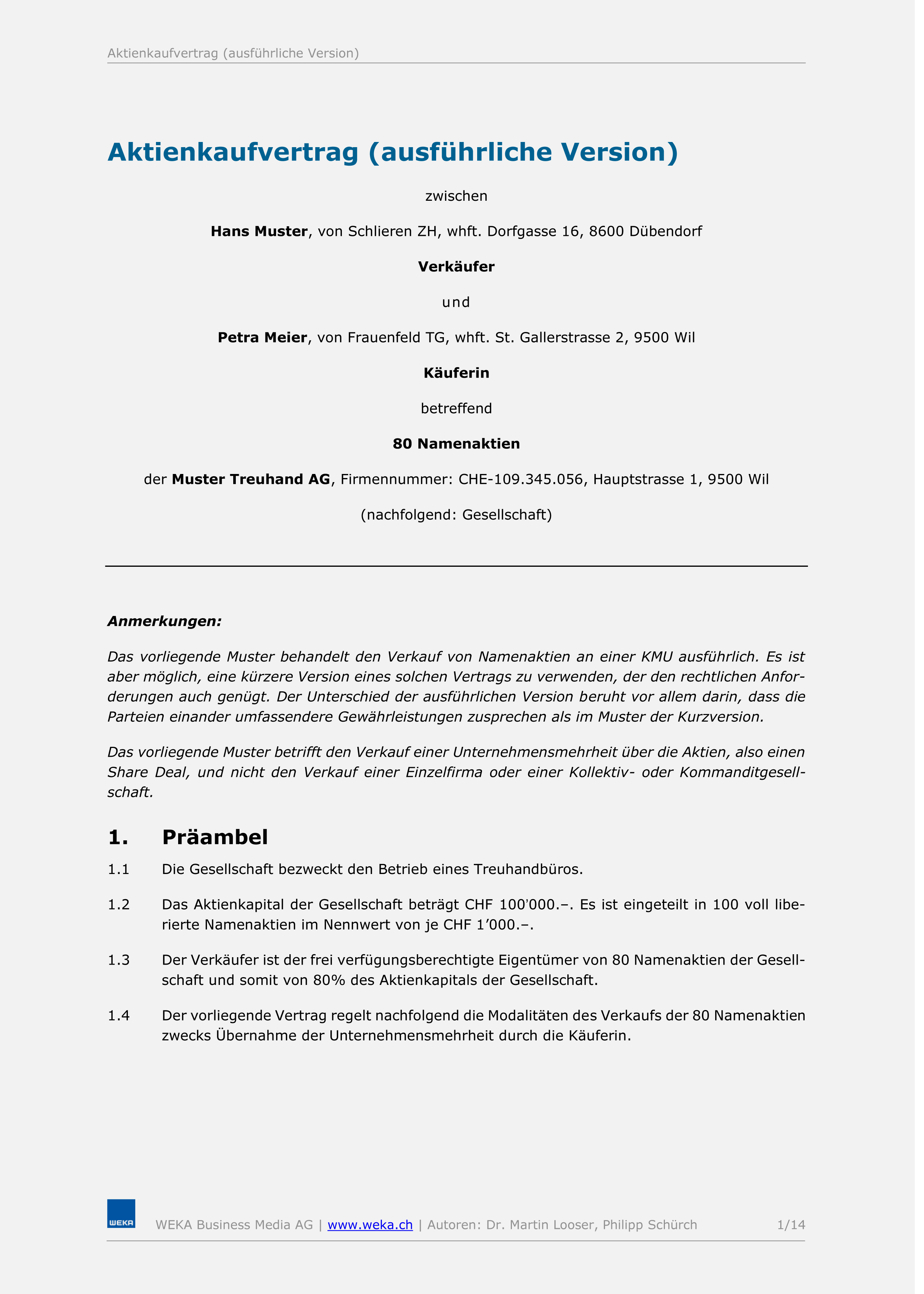- Muster Aktienkaufvertrag (ausführliche Version)
