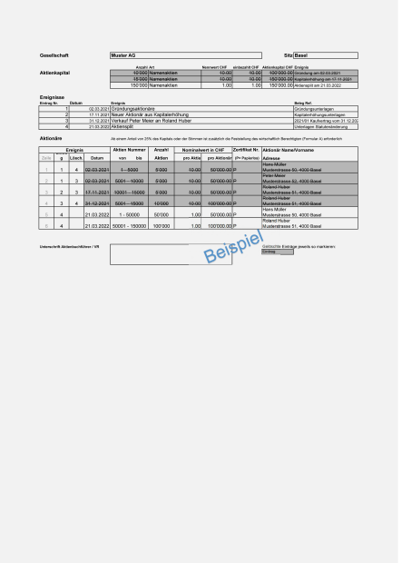 - Vorlagen Aktienbuch und GAFI-Meldungen