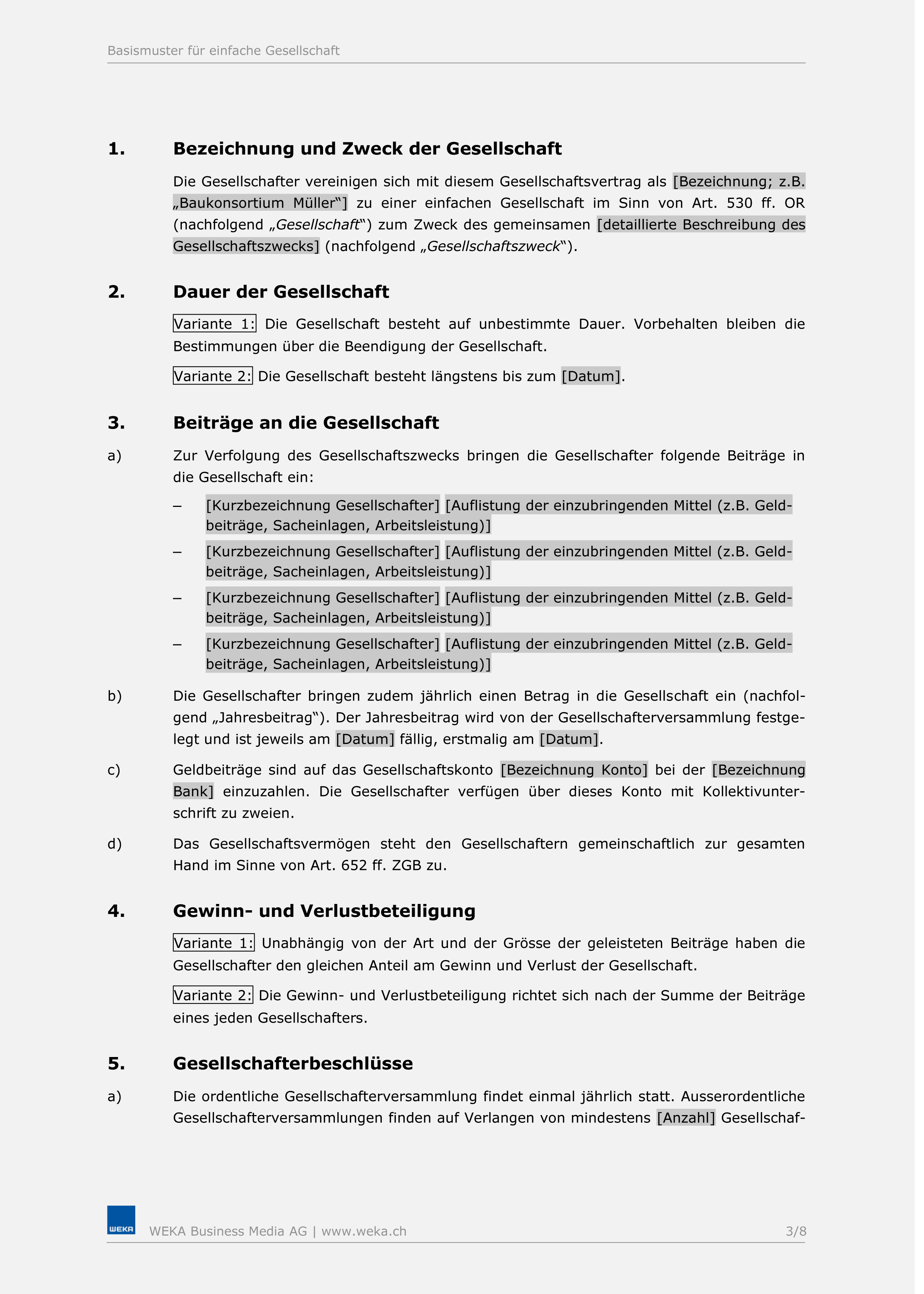 - Muster Gesellschaftsvertrag (Einfache Gesellschaft)