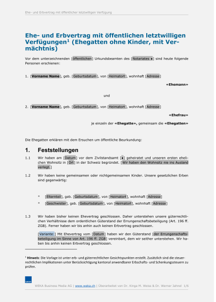 - Sie regeln mit dieser einfach zu individualisierenden Vorlage die wichtigsten ehe- und erbvertraglichen Bestimmungen.