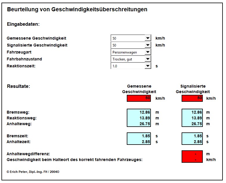 - Unfallanalyse: Beurteilung von Geschwindigkeitsüberschreitungen
