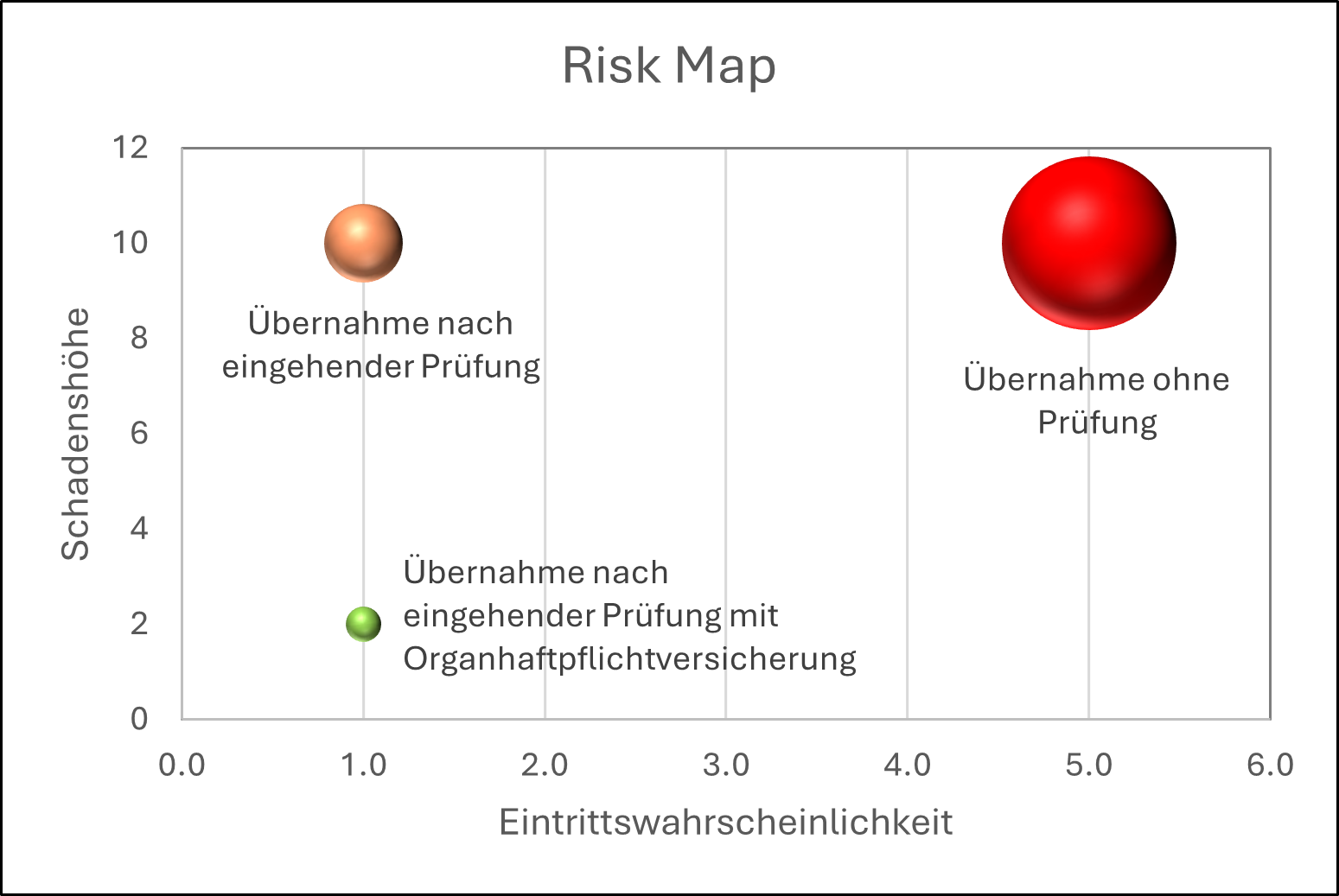 Wieso werden Risiken eingegangen? Jede Handlung – auch jene von Verwaltungsräten – ist mit Risiken behaftet. Selbst Passivität schützt nicht vor Risiken, da die Handlungen Dritter ebenfalls Auswirkungen entfalten. Risiko ist die Möglichkeit, dass Abweichungen von geplanten Handlungen oder erwarteten Ereignissen negative Folgen für die rechtliche Stellung, die finanzielle Situation, die Zielerreichung oder die Reputation haben. Idealerweise erfolgt eine Handlung erst nach durchgeführter Risikoanalyse, d.h. nach der Einschätzung der Eintrittswahrscheinlichkeit und der potenziellen negativen Konsequenzen. Erst wenn aufgrund der Risikoanalyse von einem positiven Nutzen-/Risiko-Verhältnis ausgegangen werden kann, sollte eine Handlung vorgenommen werden. Bei den Auswirkungen nicht kontrollierbaren Ereignissen, kann durch Änderung beeinflussbarer Parameter (z.B. Abschluss einer Versicherung) das Risiko reduziert werden (vgl. Risk Map).
