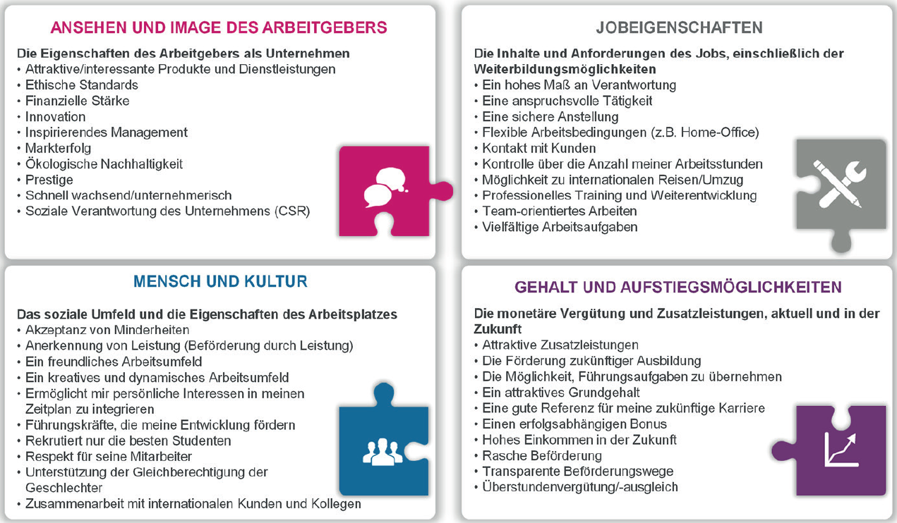 - Alle Resultate geben Indikatoren über die Employer Value Proposition, auch wenn es ggf. keine gemeinsamen Arbeitgeberattribute geben sollte.