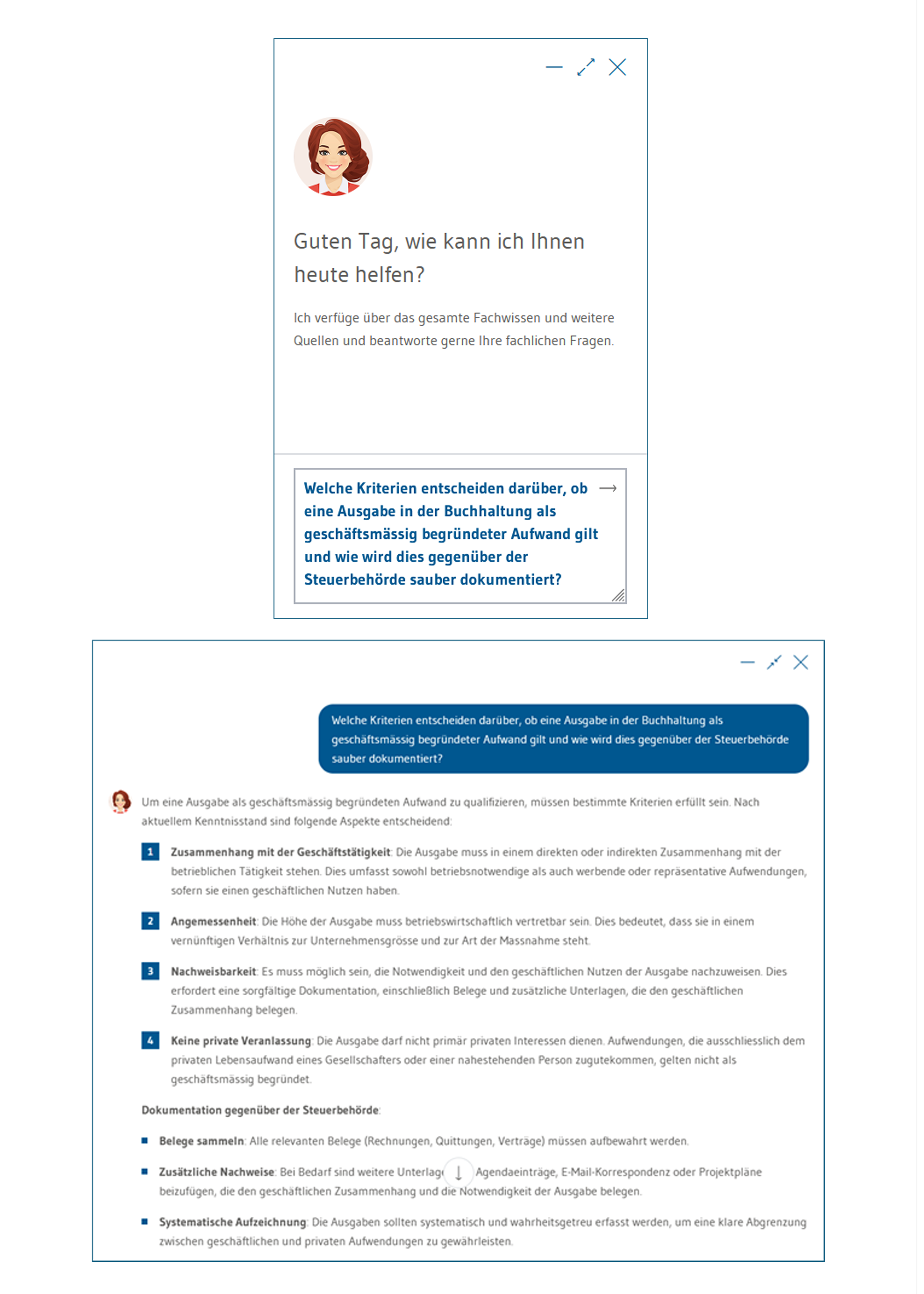 Der KI-Chatbot «Evi» steht Ihnen als digitale Assistenz jederzeit zur Verfügung. Evi beantwortet Ihre fachspezifischen Fragen rund um finanzrelevante Themen mit verlässlichen Quellangaben. Der Chatbot greift auf das vollständige Fachwissen der Wissensplattform weka.ch zu und durchsucht zusätzlich alle E-Books der Digital Library und mehr.
