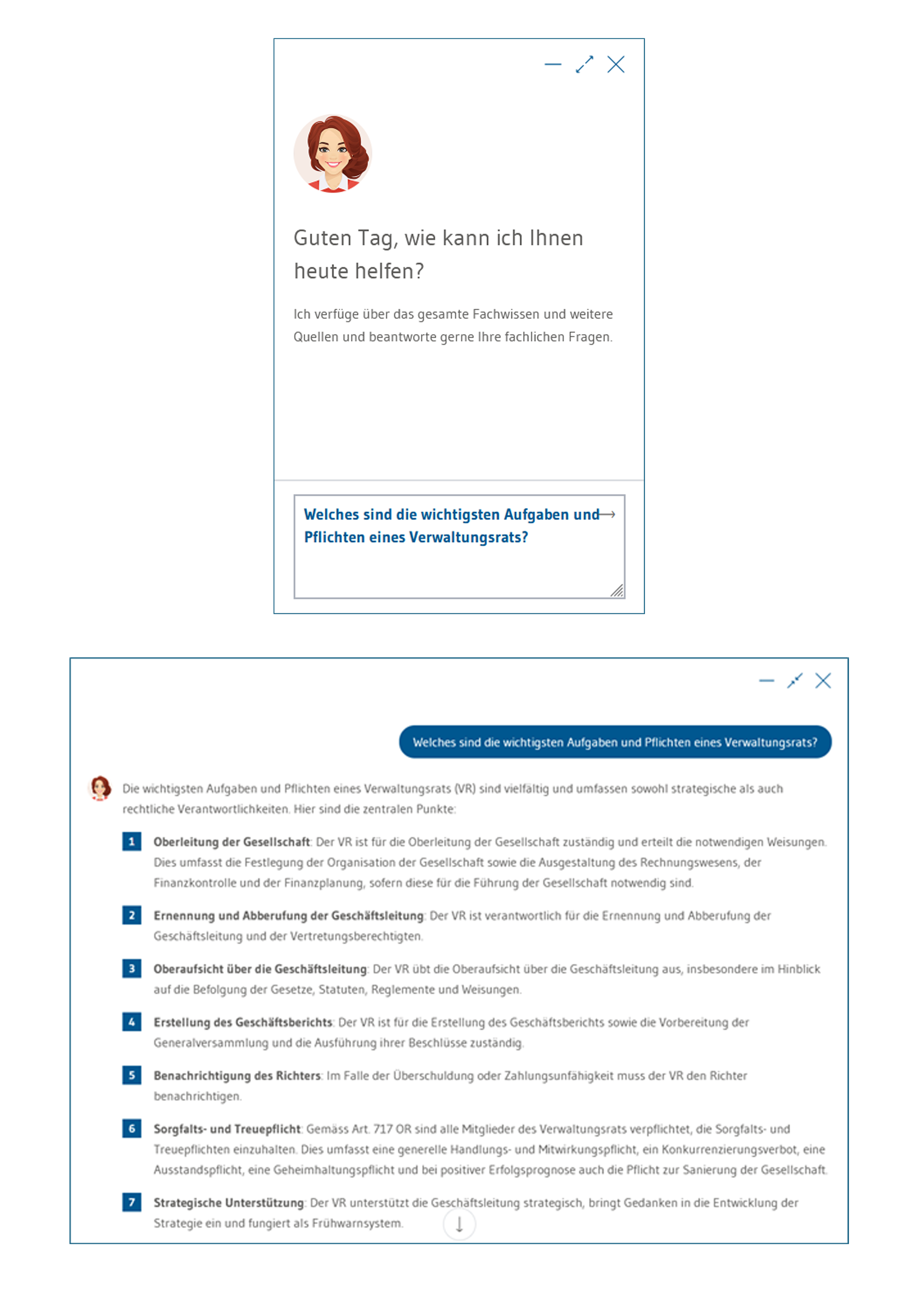Das gesamte Expertenwissen zu Management und Leadership wartet auf Sie in Form von Fachartikeln, Arbeitshilfen und Mustervorlagen, E-Books, Live-Webinaren und dem exklusiven KI-Chatbot «Evi», der über das gesamte WEKA-Fachwissen auf der Wissensplattform weka.ch durchstöbert und Ihnen nötige Quellenverweise kommuniziert. Das umfangreiche Wissen, wird von unseren Fachexperten/innen erstellt und laufend gepflegt und aktualisiert. Somit gewährleisten wir die höchste Content-Qualität, von der Sie bei Ihren täglichen Aufgaben profitieren können.